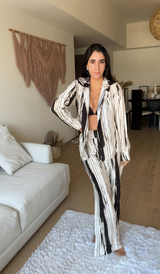 Set Margot Camisa Negro rayas