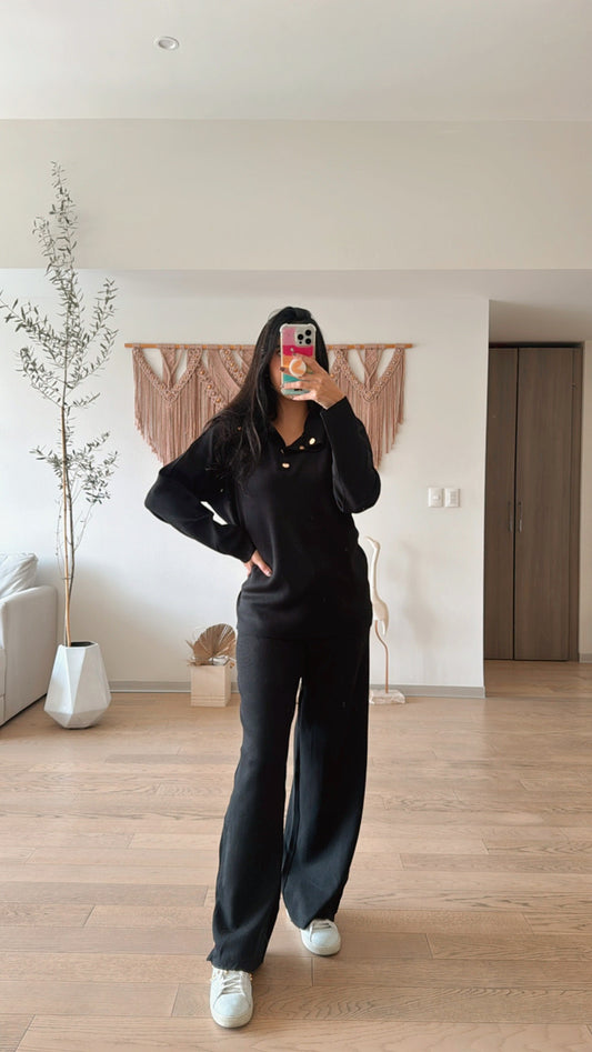 Set Margot Kimono Negro Rayas